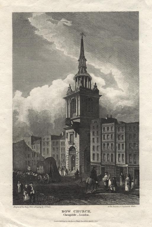 Here's a 401x600 steel engraving of the Bow Church on Cheapside Street in London
