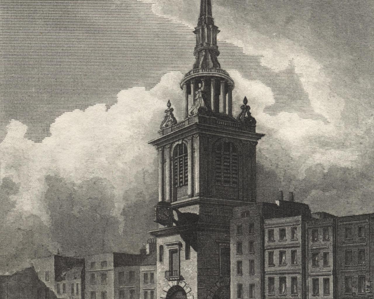 The images on this page are all derived from a single 1815 steel engraved print of Bow Church, Cheapside Street, London. Click here to get to the top of this set of background image pages.