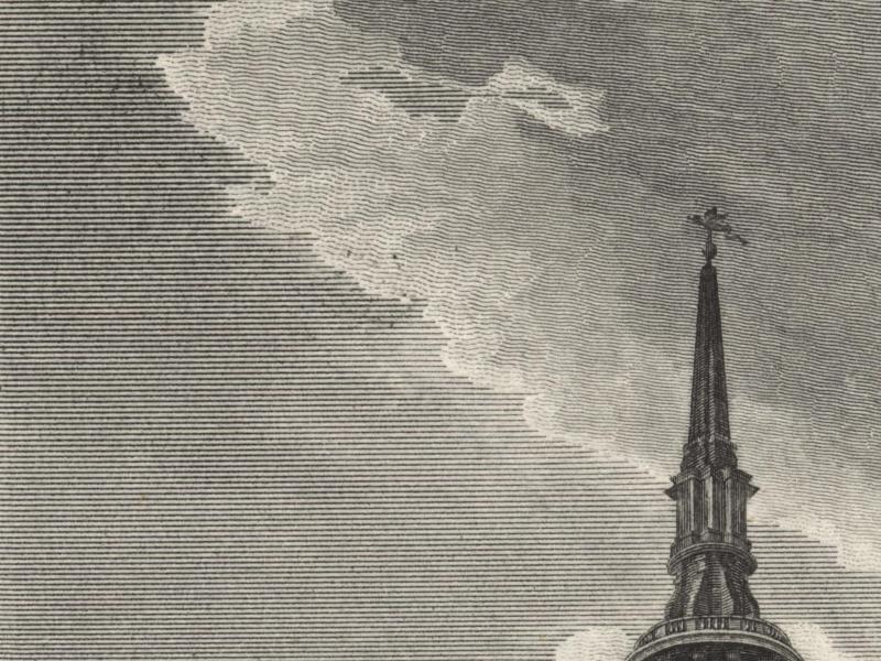 Here's a 800x600 clipping focusing on the sky with just a small part of the steeple in the above steel engraving of the Bow Church.